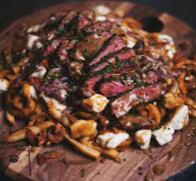 – Shredded, flame-seared Aldgoat rib meatA local legend, built to satisfy adventurers fresh off the trail, or the ice.