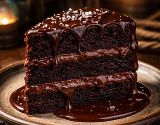 A Limsan indulgence layered as deep as the harbor itself—dark chocolate cake stacked thick with warm chocolate sauce and dense chocolate fudge, built tall and served unapologetically rich. Each forkful sinks further than the last, heavy with sweetness and impossible to rush.A dockside legend says no one orders it lightly. The kitchen agrees.