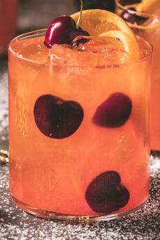 Smoky mezcal, fresh-squeezed orange juice, and a ribbon of strawberry syrup come together in this bright, fruit-forward cocktail. Served in a jar with a starberry slice garnish—unfiltered, unrushed, and best enjoyed under a painted sky.