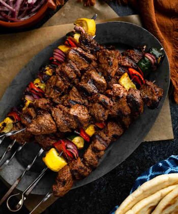 Forge your own flame-grilled masterpiece with any four ingredients, skewered and fire-kissed to order. A staple from the stalls of the Upper Deck, now served rinkside.Choices include: