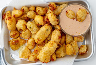 A mountain-sized indulgence that marries Limsan comfort food with the bold, nomadic flavors of the Azim Steppe and Hingashi. Crisp-fried mountain popotoes layered with rich dzo-milk cheese curds, built to carry heat, spice, and serious appetite.Make it your own with any combination of toppings: