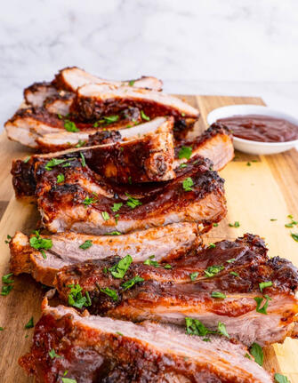 A full rack of Eastern Thanalan Aldgoat ribs, slow-marinated in a smoky desert spice blend, then flame-grilled to a perfect char. Glazed with rich golden honey that caramelizes over the fire, sealing in every drop of flavor. Served with seasoned, fire-roasted vegetables fresh from the flame—rustic, hearty, and worthy of a proper feast.