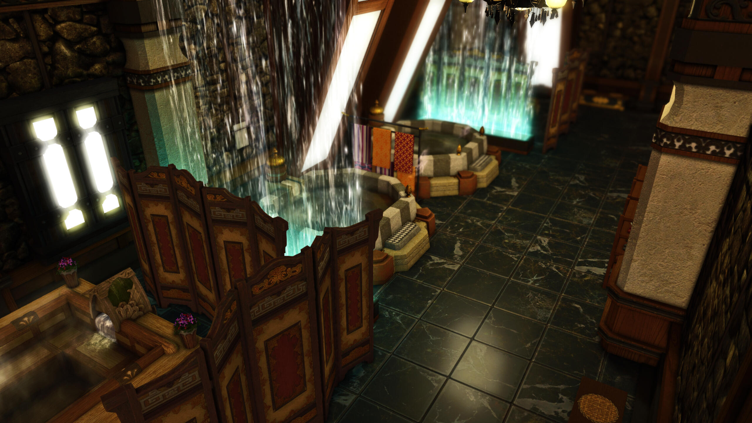 Skated ‘til you’re frozen? Danced ‘til you’re drenched? Took a puck to the pride? Whatever your excuse, the Longboat’s upstairs bathhouse is ready to thaw, soothe, and restore.Designed with the weary in mind (and the sore-bottomed in particular), our bathing facilities offer both open communal soaks and semi-private nooks for those who prefer to stew in silence. The water’s always hot, the lighting’s always soft, and the atmosphere lies somewhere between a Lominsan tavern and a Sharlayan spa — with slightly more gossip.Ever wonder how the heat stays so toasty? You can thank the cooling system beneath the rink, which conveniently pushes all that displaced warm air upward — right into the bathhouse, where it’s put to good use. Cold below, warm above. It’s almost like someone planned it. Almost.Whether you're looking to melt the cold from your bones, nurse a bruised ego, or simply eavesdrop on someone else's drama, you’ll find comfort here — and maybe a few bathhouse snacks if the kitchen staff is feeling generous.🛁 Bathhouse Guidelines (Loose but Moisturized)