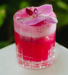 A bright and floral blend of pineapple, orange, and lime juices, stirred with white honey and poured over sparkling ice drawn from the Satasha Springs. Garnished with a wildflower petal—crisp, fragrant, and perfect for watching the tides roll in. A favorite of beachgoers, breezy adventurers, and anyone with salt in their hair.