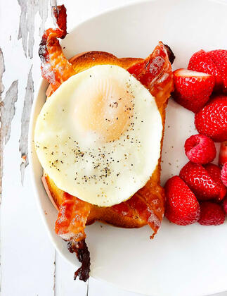 A true Lominsan lumberjack’s breakfast—two hardy eggs, seared thick-cut ham from the Hinterlands, wood-smoked bacon cured in the style of the Black Shroud, and a generous heap of crisped popoto wedges. All of it laid atop fluffy Thanalan griddlecakes and drowned in dark Gridanian maple syrup. Forks required. Naps encouraged. Breakfast is a state of mind, not a time.