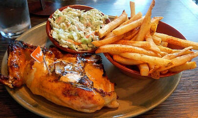 Fire-roasted dodo, quartered and slow-basted in herb butter until the skin crisps and the meat turns fall-apart tender. Choose your cut—light or dark—and enjoy it alongside crisp popoto fries, chilled radish-root slaw, and a side of rich pan-dripping gravy. Comfort food done the Lominsan way: simple, hearty, and seared with soul.