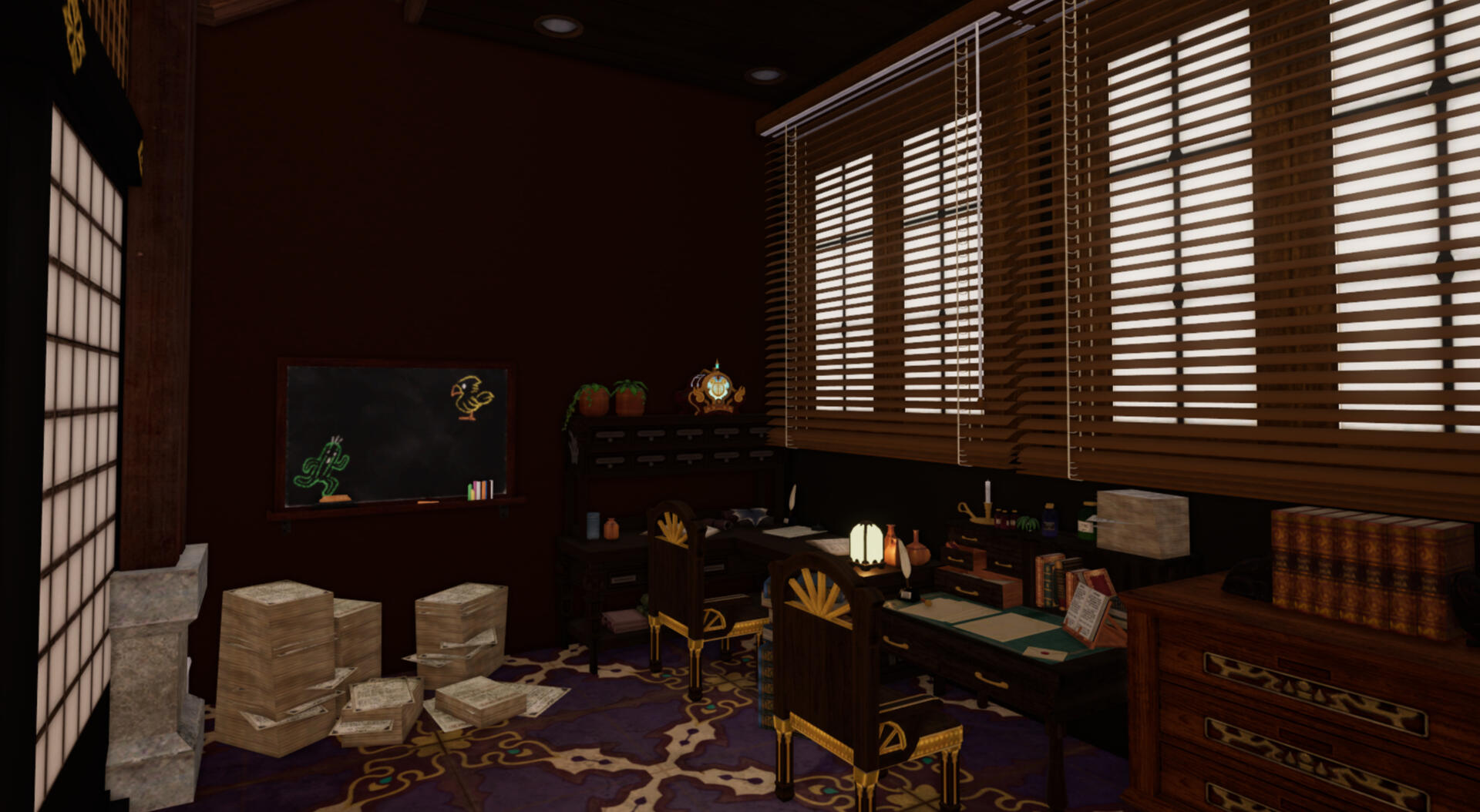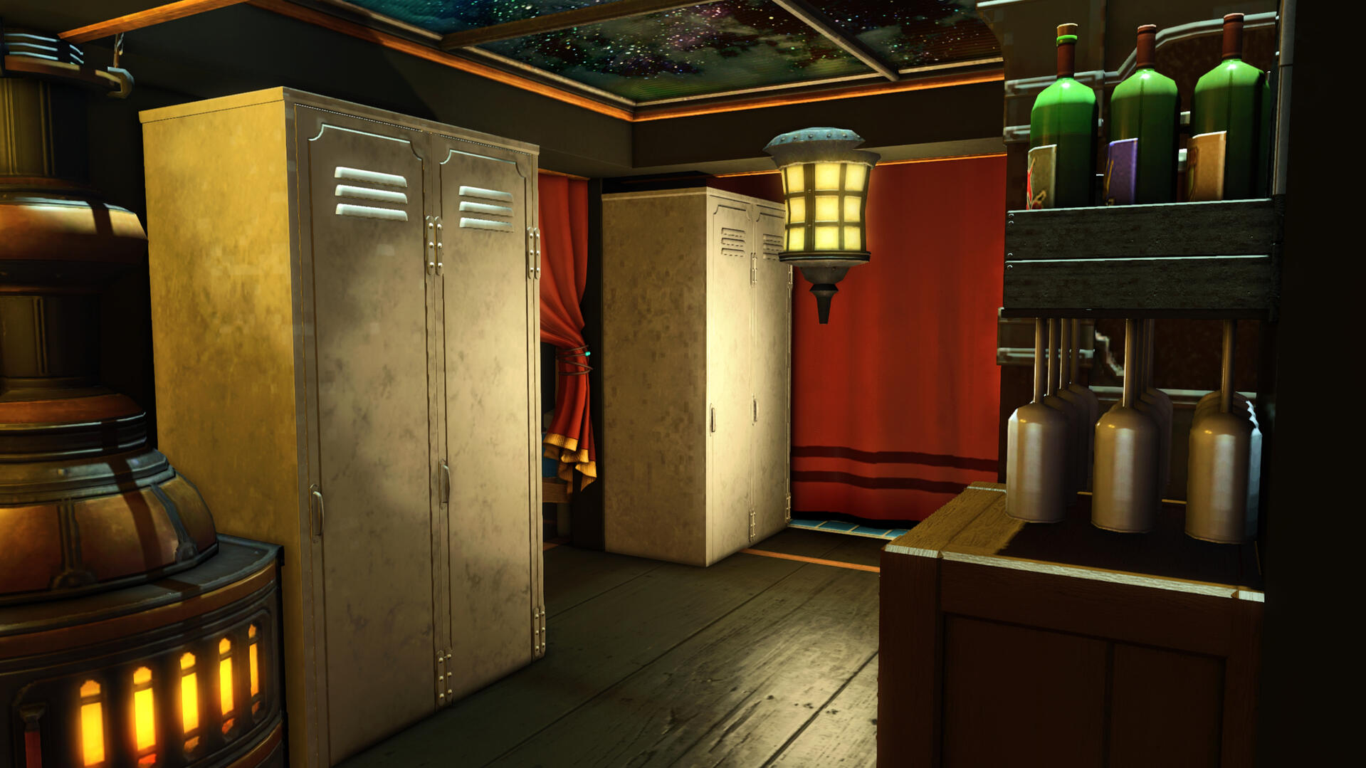Another personal project, this design followed the loss of the League’s original airship cabin — a rustic, salvaged space that had served its purpose well. The new build was something else entirely: sleek, advanced, and purpose-built to reflect the League’s growth. Yem worked closely with her lead engineer, a sharp-minded woman known simply as Gravy, to bring the vision to life. It’s cozy, modern, and yes — it hums, just as any proper airship should.